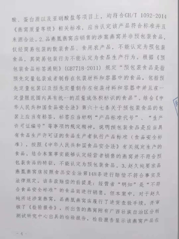 涉案燕窝不符合食品安全标准三亚市中级法院支持消费者十倍货款赔偿诉求