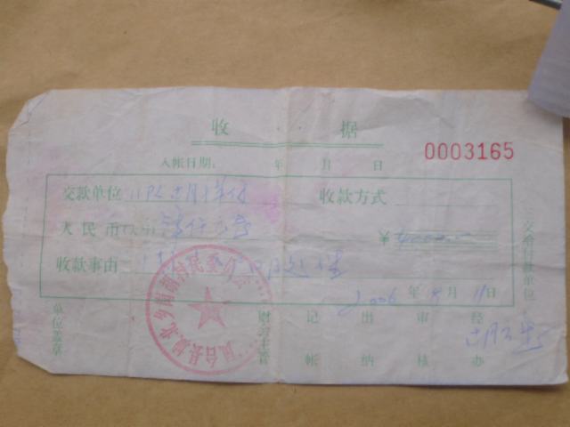 3、2007年12月14日,村干部使用自制收据收取并截留村民胡传厚不妇检处理费3000元。